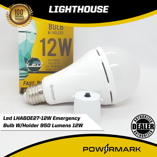 LIGHTHOUSE Led LHA60E27-12W Emergency Bulb W/Holder 950 Lumens 12W