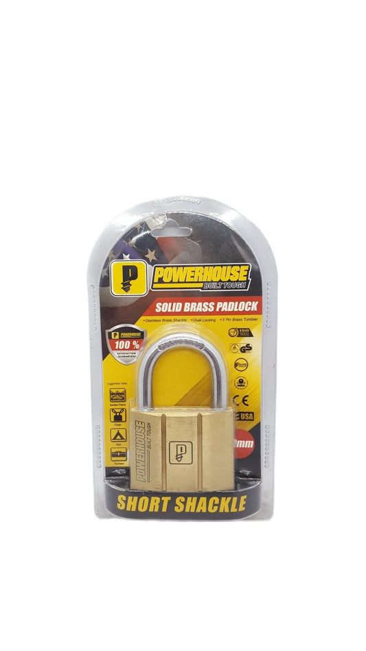 POWERHOUSE 60MM" Solid Brass Padlock (Short Shackle) for Gate, Chain and Tool Box