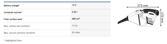 BOSCH GAS 12V-Li Cordless Vacuum Cleaner (Bare Tool)