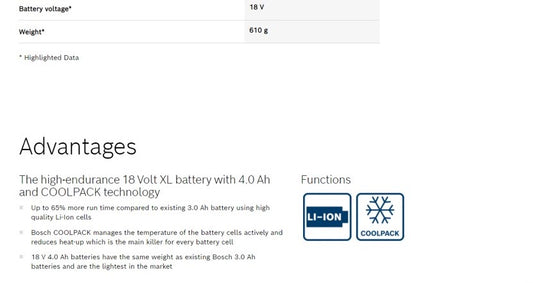 BOSCH GBA 18V 4.0Ah M-C Slide Pack Lithium Ion Battery