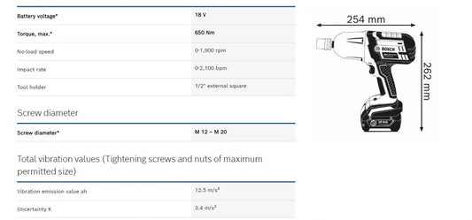 BOSCH GDS 18 V-EC 250 Cordless Impact Wrench (Bare Tool)