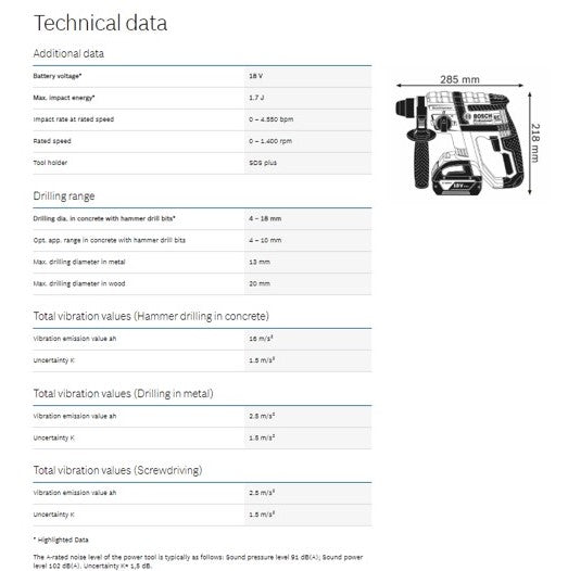 BOSCH GBH 18V-EC Brushless Cordless Rotary Hammer (Bare Tool)