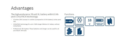 BOSCH GBA 18V 6.0Ah M-C Slide Pack Lithium Ion Battery
